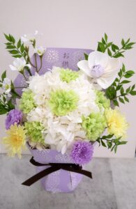 オーダー☆ご友人の命日に~プリザーブドフラワーサッカーボール風仏花~